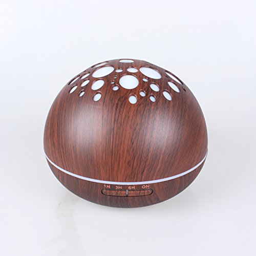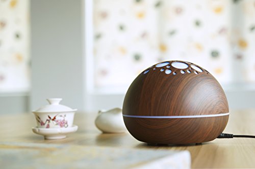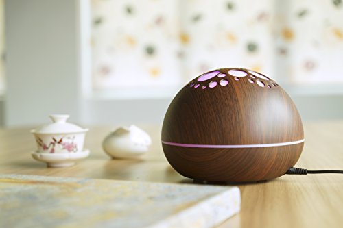 300ml 7 LED Color Night Lights Aromatherapy Essential Oil Diffuser,Ultrasonic Cool Mist Humidifier with Adjustable Mist Mode (Dark Wood Color)