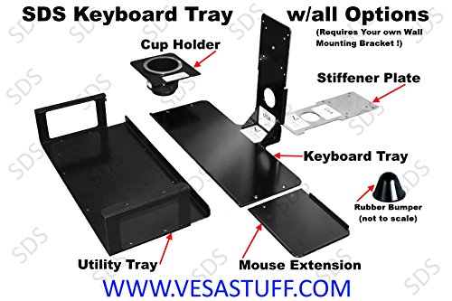 -. Feature : Black Powder Coated Keyboard Tray that mounts using the 100mm or 75mm VESA pattern on the back of your monitor or All-In-One PC (Some Dell All-In-Ones may have clearance problems with power connector) / Made for mini keyboard and mouse or full size keyboard with touch screen. Accessories avaialible for extending the keyboard tray to use a full size keyboard with a mouse. / MINI Design is Great for direct wall mount using ultra thin bracket or Kiosk, fits in tight spaces / Acessories SOLD Separately: Mouse Extension Tray, Utility Pocket, Stabilizer Adapter and the new Utility Shelf - all with 5 year Limited Warranty / Allows you to choose your style of Mounting Brackets (wall mount, desk mount, ceiling mount or floor mount) with 75mm / 100mm VESA Pattern