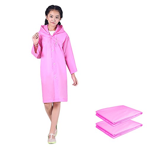 Rain Ponchos 2 Packs for kids with Drawstring Hood and Sleeves - for Hiking, Backpacking, Camping or Traveling