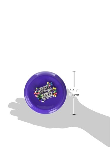 - One four inch round magnetic pincushion and fifty plastic head pins