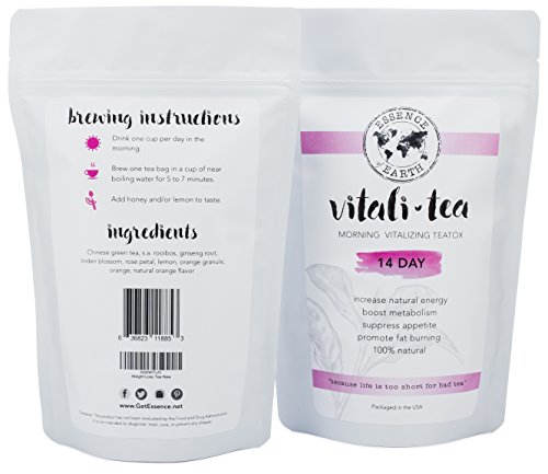 -. Binding : Misc. -. Brand : Essence Of Earth -. Color : White -. EAN : 0636823118853 -. Feature : Lose weight and burn fat with this special blend of herbs and green teas that boost your metabolism and promote the loss of stubborn body fat. / Improve digestion naturally while suppressing your appetite and reducing bloating giving you a flatter belly. / Increase natural energy allowing you to feel more alert and focused throughout the day without the mid afternoon lows. / Boost your immunity helping you stay healthy and feeling good physically and mentally while protecting you from getting cold's and flu's throughout the year. / Gently detox and cleanse your body without harmful side effects from harsh laxatives. This tea will NOT give you an upset stomach and keep you running to the bathroom. Safe to drink long-term. -. IsAdultProduct : 0 -. Label : Essence Of Earth -. Manufacturer : Essence Of Earth -. PackageQuantity : 2 -. ProductGroup : Grocery -. ProductTypeName : GROCERY -. Publisher : Essence Of Earth -. Studio : Essence Of Earth -. Title : Weight Loss Detox Tea From Essence Of Earth. This Detox Cleanse Will Naturally Burn Stubborn Fat, Suppress Appetite, Boost Energy, & Reduce Bloating. Feel Healthier, Slimmer, & More Vibrant Now! -. UPC : 636823118853