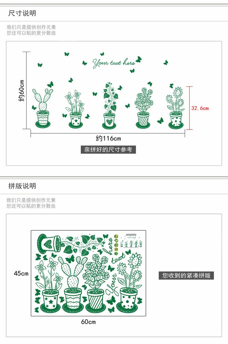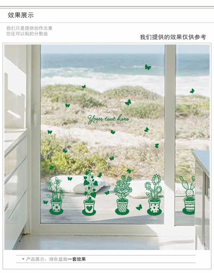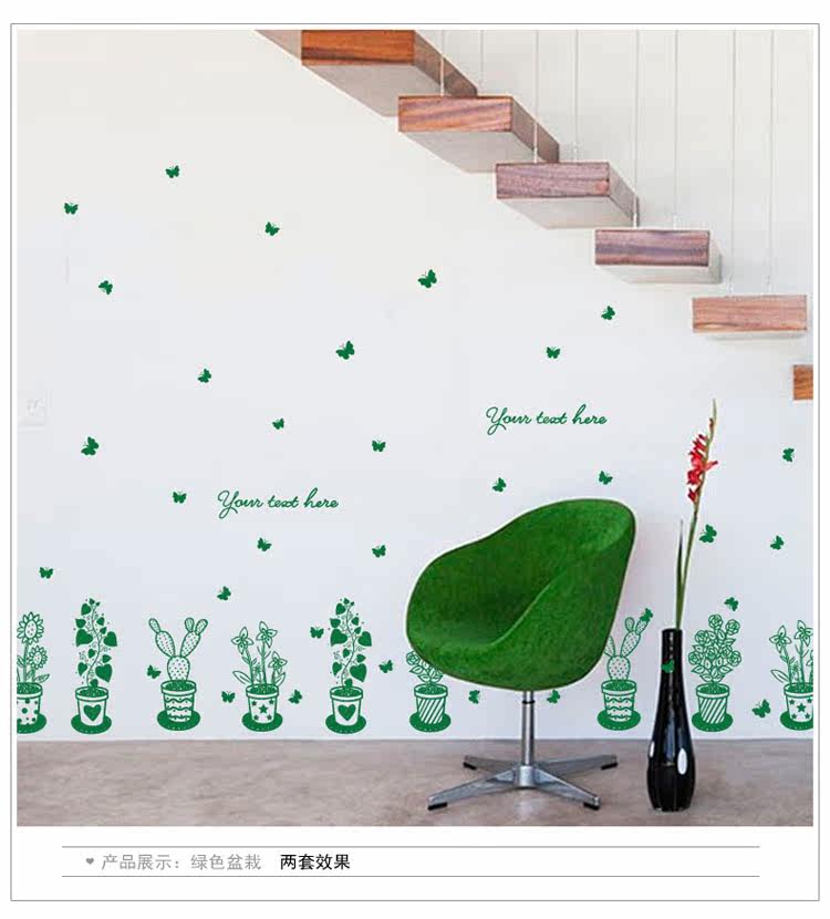 墙贴绿色盆栽植物清新田园贴纸客厅卧室背景装饰店铺橱窗布置贴画
