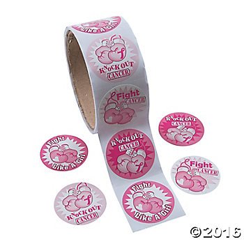 200 PINK RIBBON Stickers (2 Rolls of 100 each) - BREAST CANCER AWARENESS - Fundraising Events - Correspondence KNOCK Out Cancer (Boxing Gloves - KNOCK OUT Cancer)