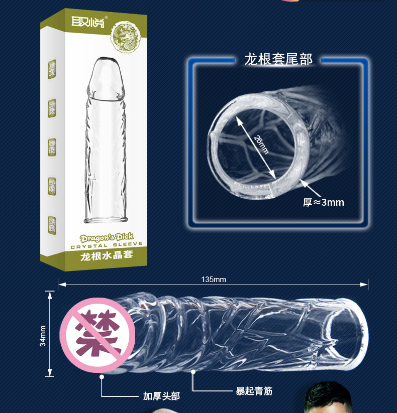 Soft material design crystal caps , closely fit your penis, increase the diameter of the glans, avoid direct contact with the vagina and penis, thereby reducing the glans sensitive points to delay ejaculation time.