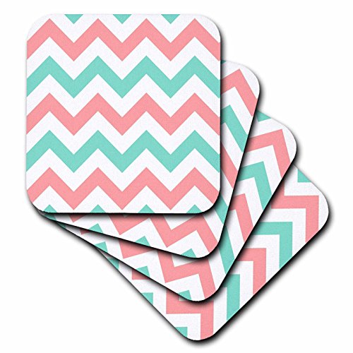3dRose cst_179801_1 Coral Pink & Turquoise Chevron Zig Zag Pattern Teal Zigzag Stripes Soft Coasters, (Set of 4)