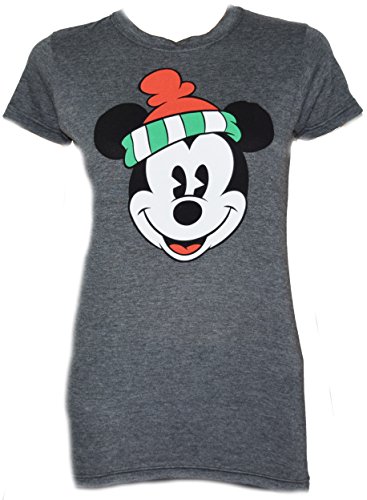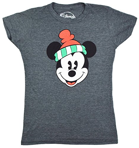 Disney Classic Christmas Mickey Mouse Face Juniors T-shirt (Extra Large , Charcoal Heather)