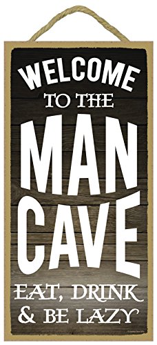 Welcome to the Man Cave, Eat, Drink and Be Lazy - 5 x 10 inch Hanging, Wall Art, Decorative Wood Sign Home Decor