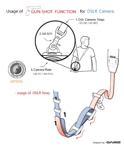This gunshot clip attach the strap to the bottom of a Gariz half case. This allows you to wear the strap to enable the ''Gunshot function.'' Requires XA-HR or XA-PC1 tripod thread and Gariz neck strap for Gunshot function.