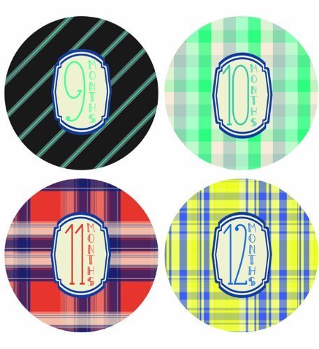 Lucy Darling Shop Monthly Baby Sticker - Baby Boy - Plaid Design - Months 1-12