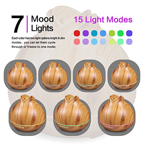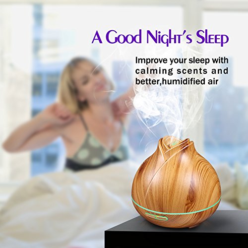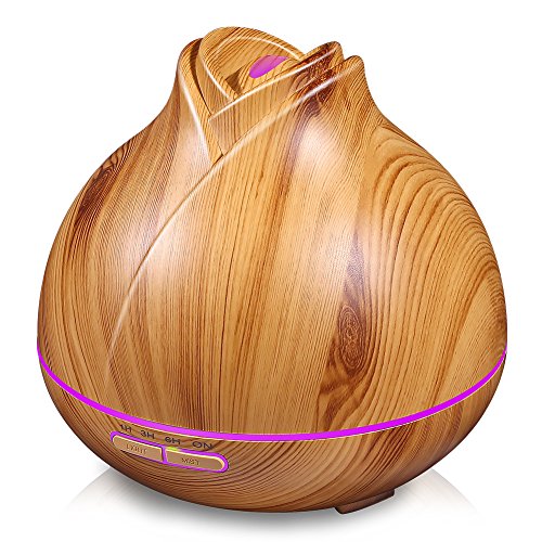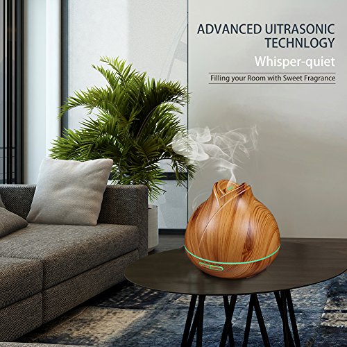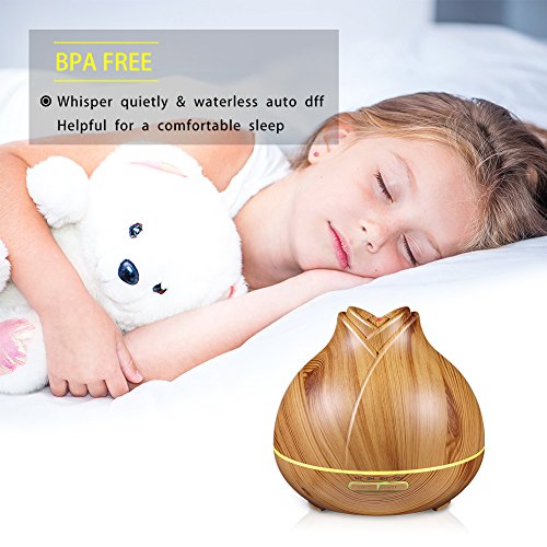 400ml Aroma Essential Oil Diffuser, Ultrasonic Cool Mist Aromatherapy Humidifier with 7 Color LED Lights & 4 Timer Settings, Waterless Auto Shut-Off for Baby Home Office - OSORD Wood Grain
