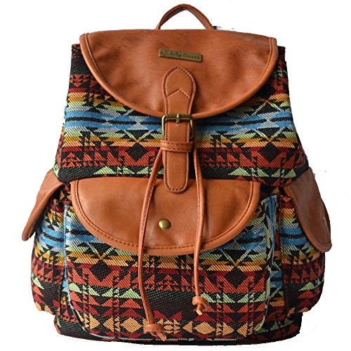 - Title : Your Gallery Women's Faux Leather and Canvas Tribal Stripe Print Canvas Backpack