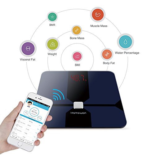 -. Title : HAMSWAN Smart Scale Bluetooth Connected Body Fat Scale Accurate Measurements: Weight Body Fat Body Water Muscle Mass BMI BMR (KCAL) Bone Mass Visceral Fat (Black)