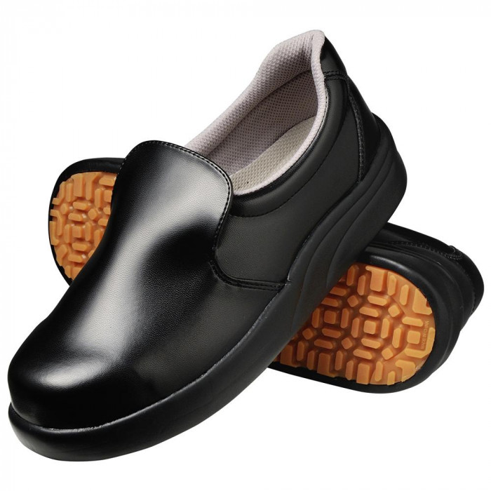 すべりにくく油に強いスニーカータイプ。クッション性に優れているため疲れにくく、先芯入りで落下物からつま先部分を保護します。