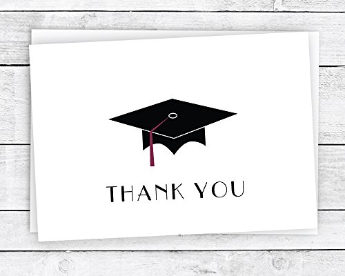 Graduation Cap with Colored Tassel Thank You Cards - 24 Cards & Envelopes (Maroon)