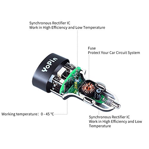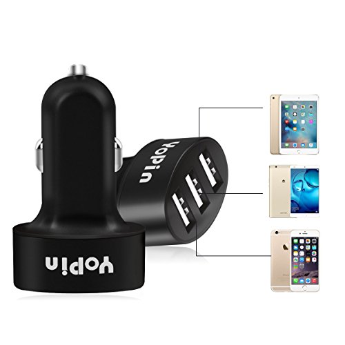 YoPin Car Chargers 3 Smart USB Ports Compact Iphone Car Charger Adapter for Mobile Device (Grey)