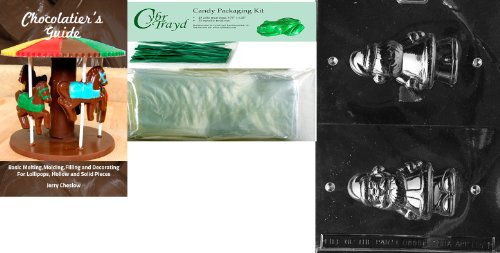 Cybrtrayd Medium Hollow Santa Chocolate Mold with Chocolatier's Bundle of 25 Cello Bags, 25 Green Twist Ties and Chocolatier's Guide