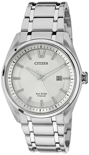 -. Feature : Dial Color: White, Case Shape: Round, Dial Glass Material: Sapphire / Band Color: Silver, Band Material: Titanium / Watch Movement Type: Light Powered, Watch Display Type: Analog / Case Material: Titanium / Water Resistence Depth: 50 meters