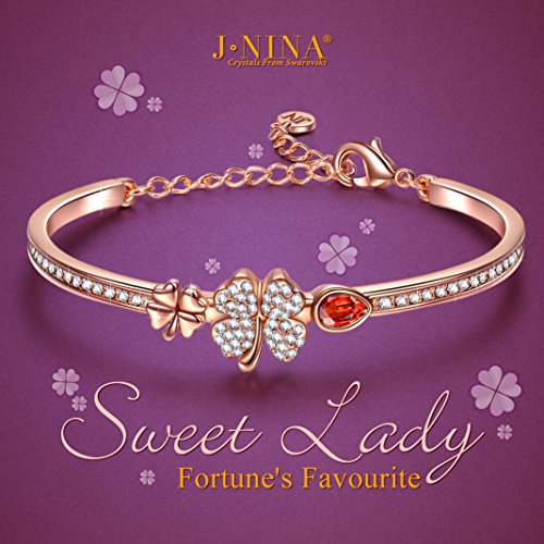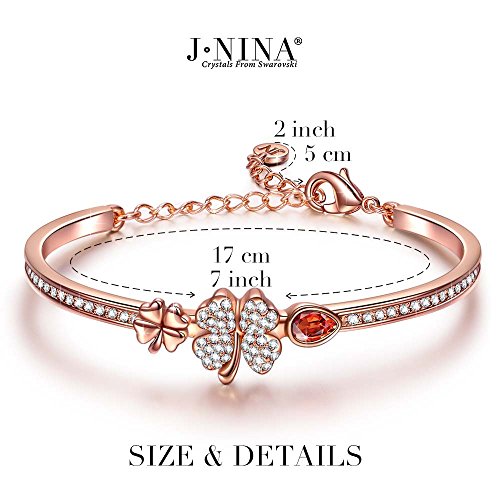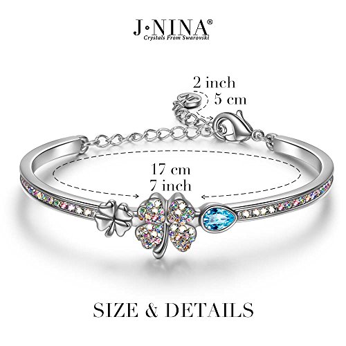 -. Title : J.NINA "Sweet Lady – Lucky Baby" 7 Inches Clover Bangle Bracelet for Woman & Lady, Made with SWAROVSKI Crystals