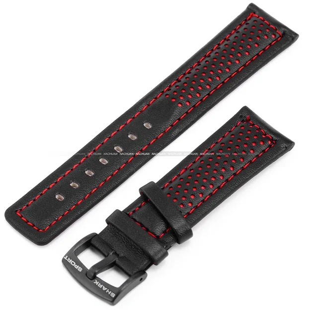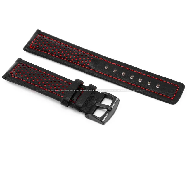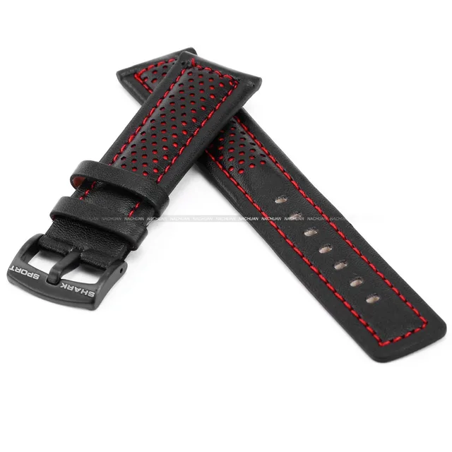 상어 브랜드 원래 패션 남성 시계 가죽 벨트 시계 밴드 블랙 레드 정품 가죽 스트랩 액세서리 시계 밴드/WTL050