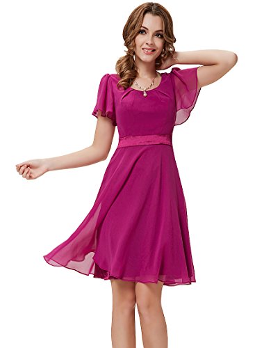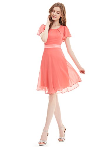 Round neck short party dress. Not padded. Unique satin waist creates a universally flattering silhouette. Concealed side zipper. Lining, no stretch. The sleeve length of size 6-14 are 15-18cm,15-18cm,18-20cm,18-20cm,18-20cm. The sleeve opening of size 6-14 are 71-73cm,73-76cm,76-78cm,78-81cm,81-84cm. The shoulder across of size 6-14 are 33-35cm,35-38cm,35-38cm,38-40cm,38-40cmFeature