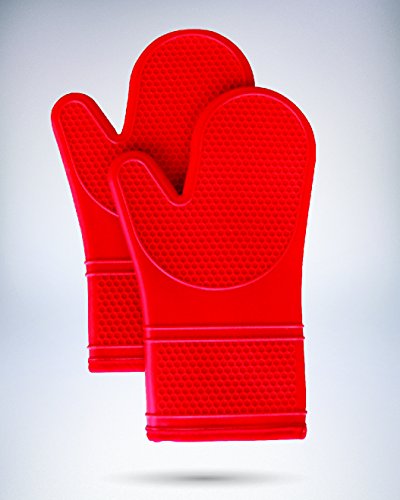 (Set of 2) The Original GORILLA GRIP Non-Slip Silicone Oven Mitt, Red- Set of Oven Mitts