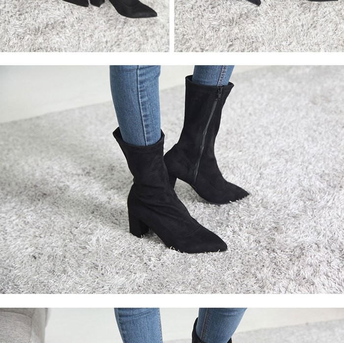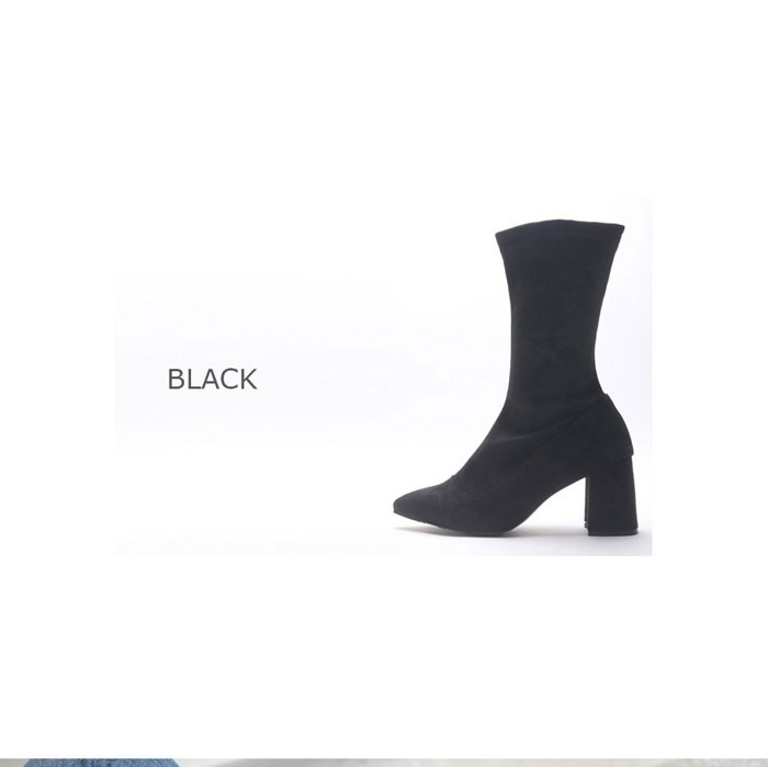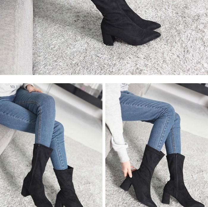 商品名:ミドルブーツ レディース ストレッチブーツ チャンキーヒール 太ヒール スエード調 2017 秋冬 ファッション 靴 婦人靴