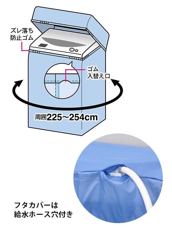| 寒い時期にベランダや屋外に置いても硬くならないポリエステル素材。本体カバーのギャザー部分が伸縮するので、洗濯機にかぶせるだけでフィット!フタカバーはヒモで本体カバーと固定するので、風などで飛ぶのを防ぎます。ズレ落ち防止ゴムが劣化した場合は市販のゴムに入れ直して使用できます。 |
