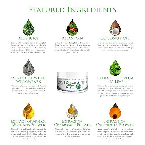 -. Title : Ultimate Aloe Skin Care Cream * My Answer When Asked How I Got Beautiful Skin * 75% Organic Aloe Handles Sun Burn, Acne, Psoriasis, Ezcema & All Other Skin Conditions * Contains the Major Antioxidants * See Ingredients List *