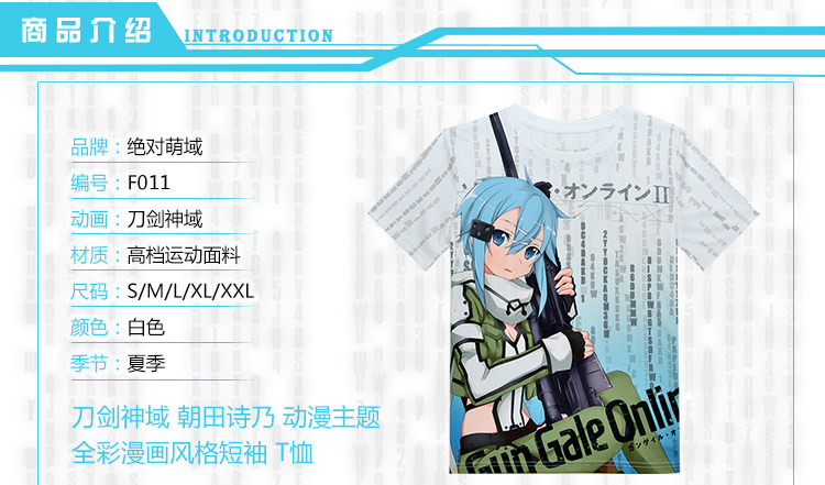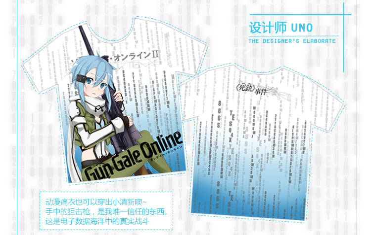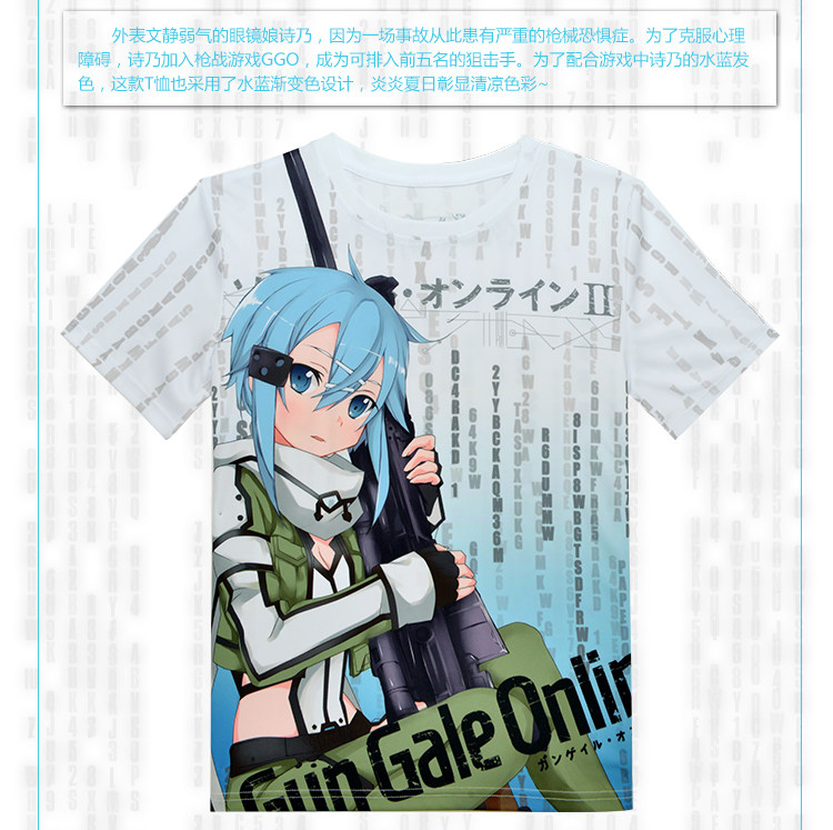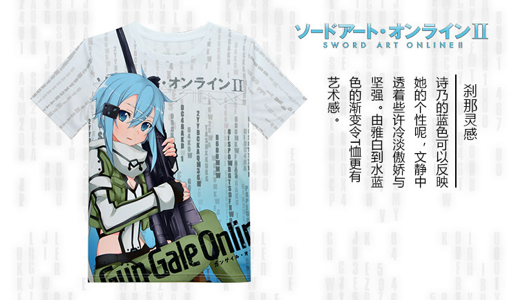 刀剑神域朝田诗乃周边印花男女短袖全彩运动动漫T恤夏装