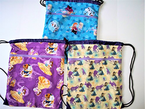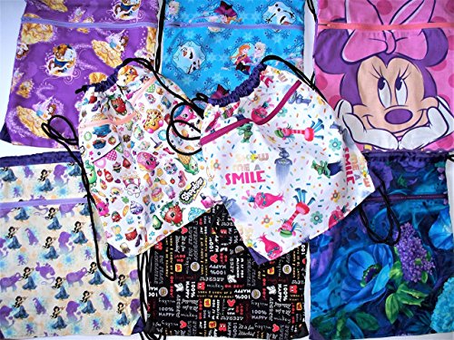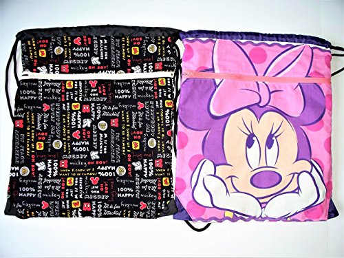 Minnie Mouse,Mickey Mouse,Jasmine,Belle and Beast,Trolls,Shopkins,Frozen,Flowers Disney Bags Fabric Covered,Nylon Lined,Drawstring Backpack,Your Choice