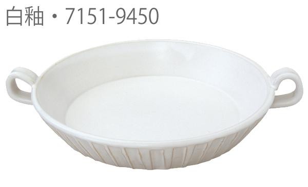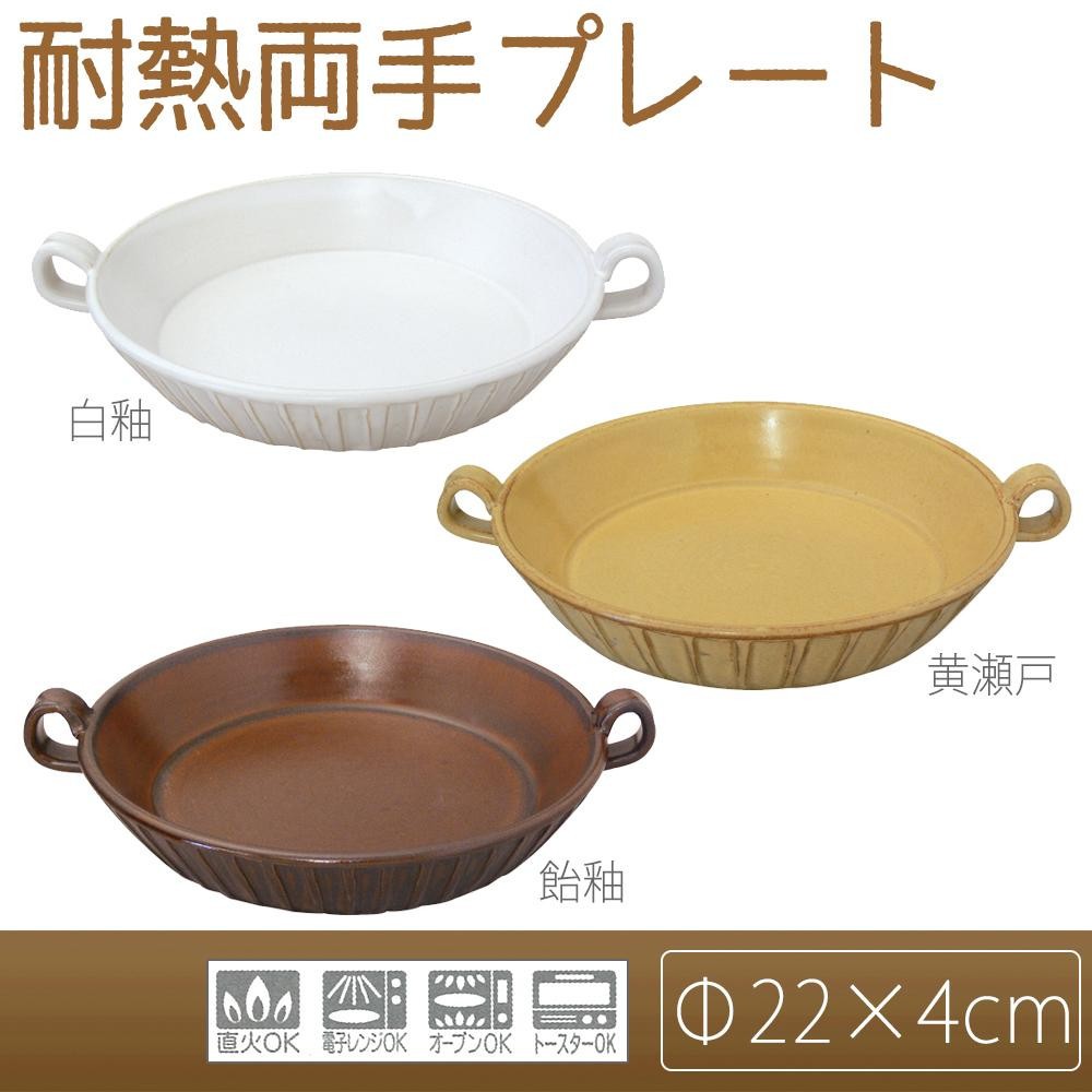 そのまま火にかけられるから、調理も料理の温め直しもらくらく。少し深さのある大皿はスープパスタにもよさそう♪ 製造国:日本 素材・材質:耐熱陶器 商品サイズ:Φ22×4cm 仕様:直火使用可オーブン使用可(350度まで対応)電子レンジ使用可トースター使用可食器洗浄機使用不可 ※サプライヤー直送品  ご注文後3~4営業日後の出荷となります【商品名】日本製 耐熱食器シリーズ 耐熱両手プレート 白釉・7151-9450