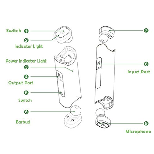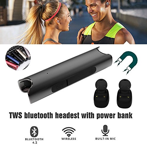 -. Feature : 1.Wireless earbuds built-in CVC noise isolation chipset is easy to use, it reduces outside noises, enable clearer microphone sound. IP67 waterproof and dustproof. / 2.Car bluetooth headset along with 850 mAh charging case which can be used as emergency power bank for your cell phone, support call hands-free function. / 3.True wireless Mini TWS earphones support one match two, connect two devices via bluetooth, share good music to your lover. / 4.Bluetooth headphones and charger, fast pairing with smart cell phones, tablets and other bluetooth enabled music devices,Magnetic adsorption headset to charge. / 5.Cordless 2 earpieces with 4.2 bluetooth, work for HSP, HFP, A2DP and AVRCP profiles.Tip, you need to adjust the music volumn via your device.