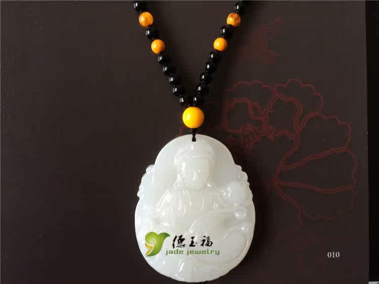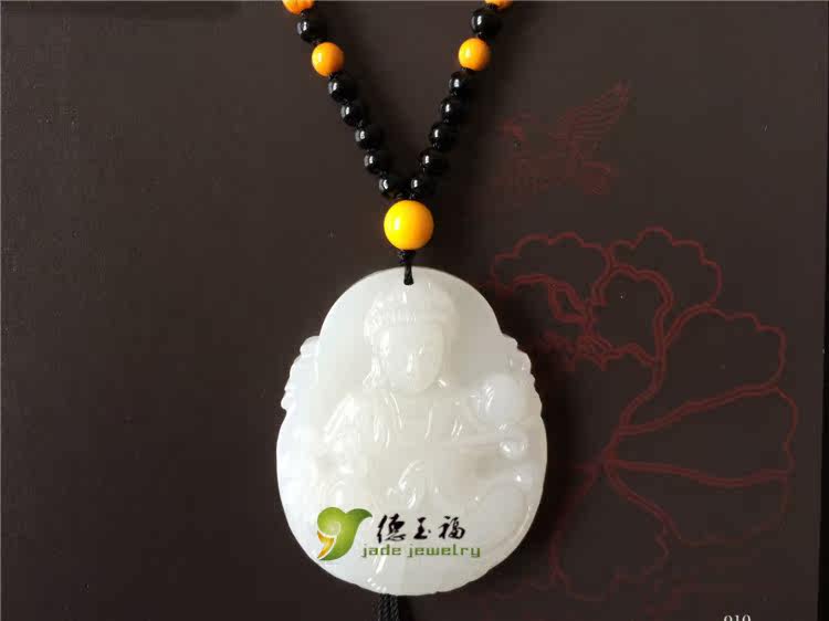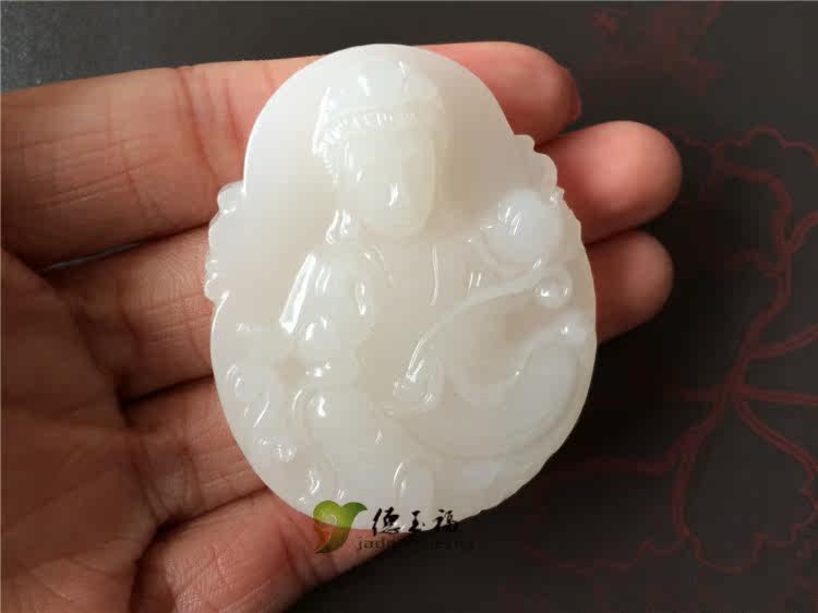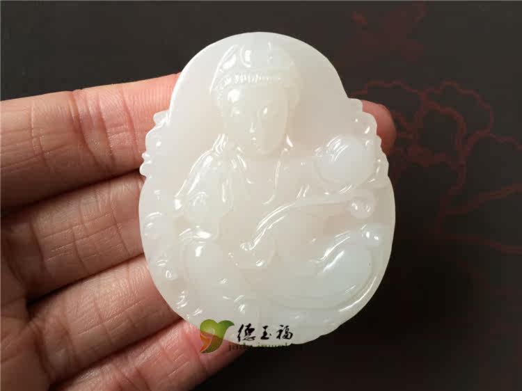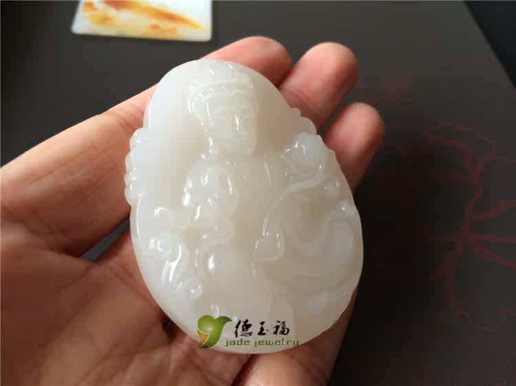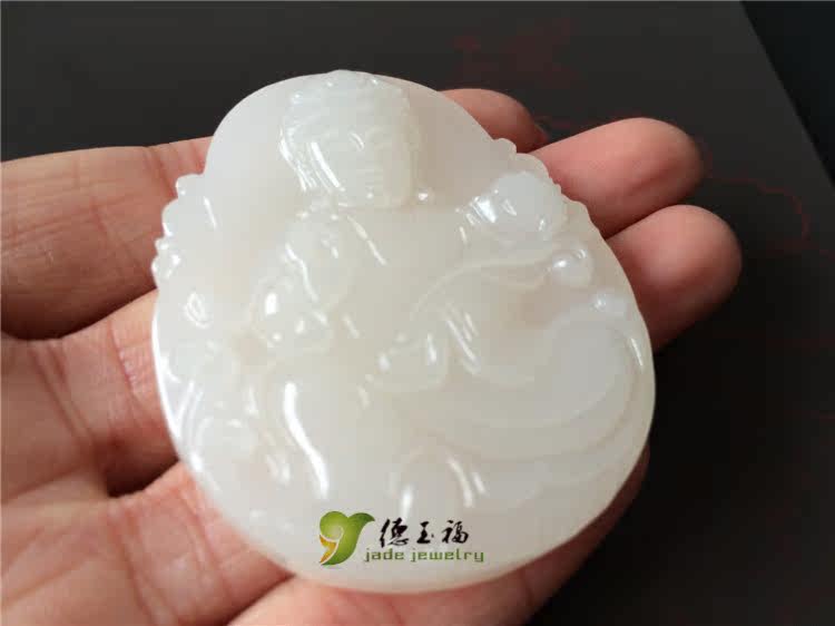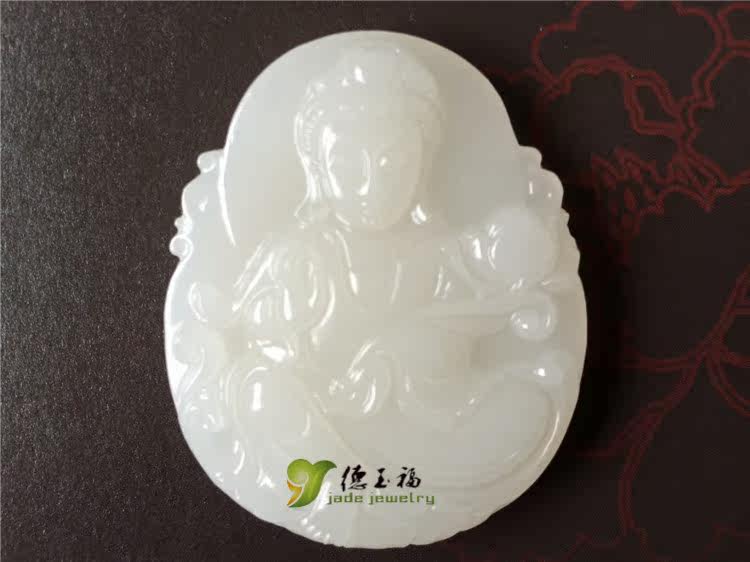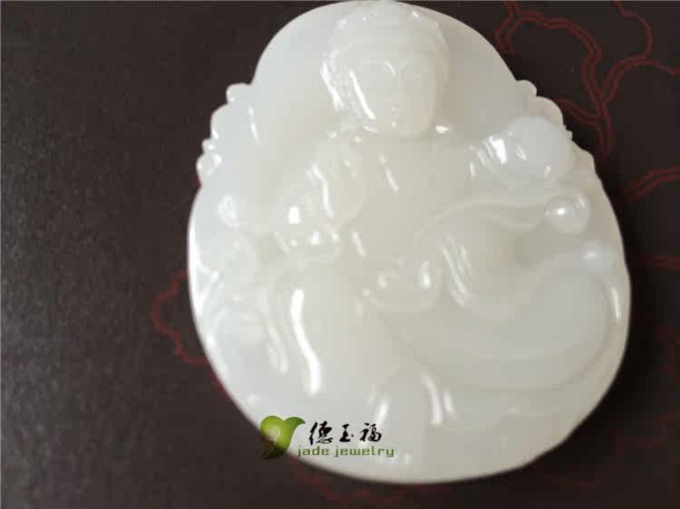 【品名】:德玉福天然白玉观音吊坠