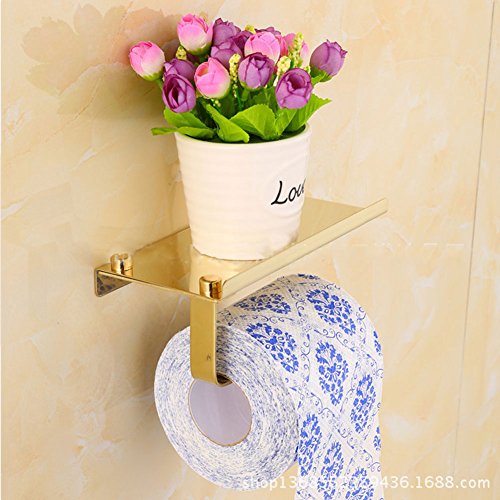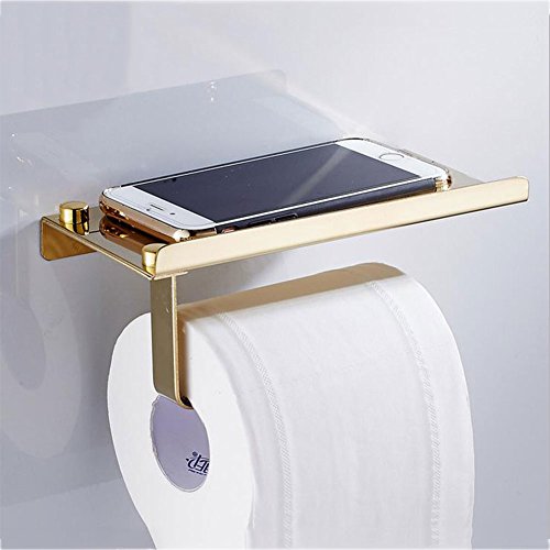 Fyore Toilet Paper Holder Storage SUS304 Stainless Steel Heavy Duty Drilling Bathroom Tissue Roll Holder with Phone Storage Shelf (gold)