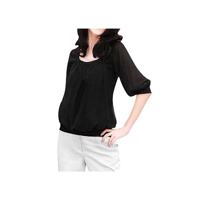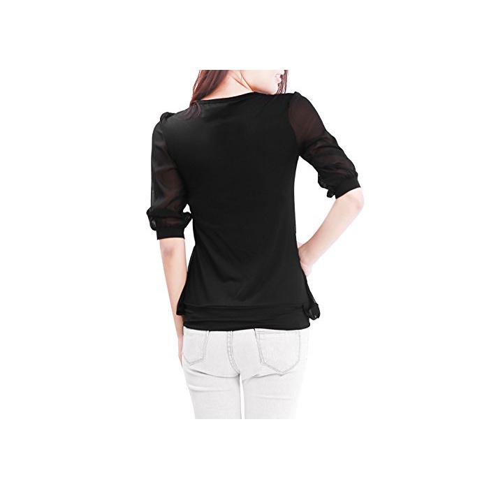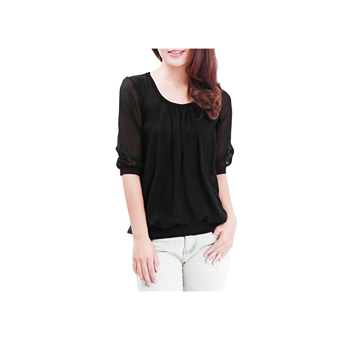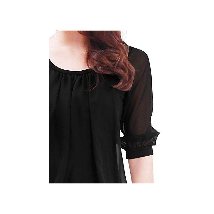 Allegra K (JP) 레이디스 블라우스 톱스 둥근 목 모양5 분소매 스트레치 캐주얼 블랙 XL (JP 21)