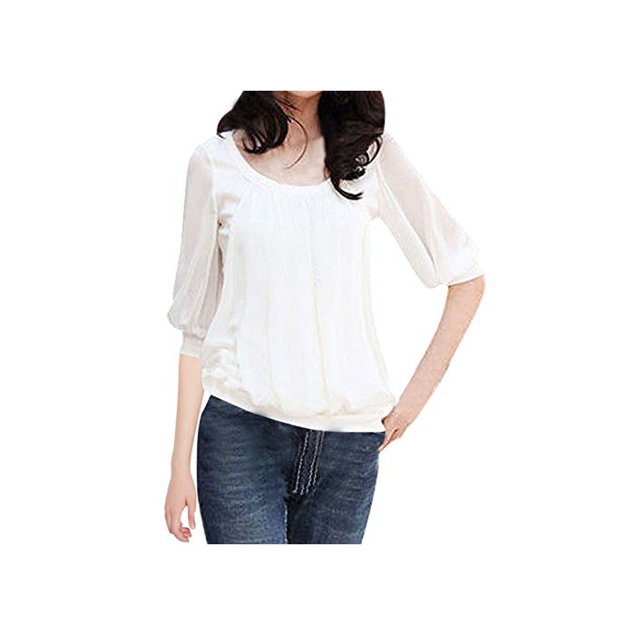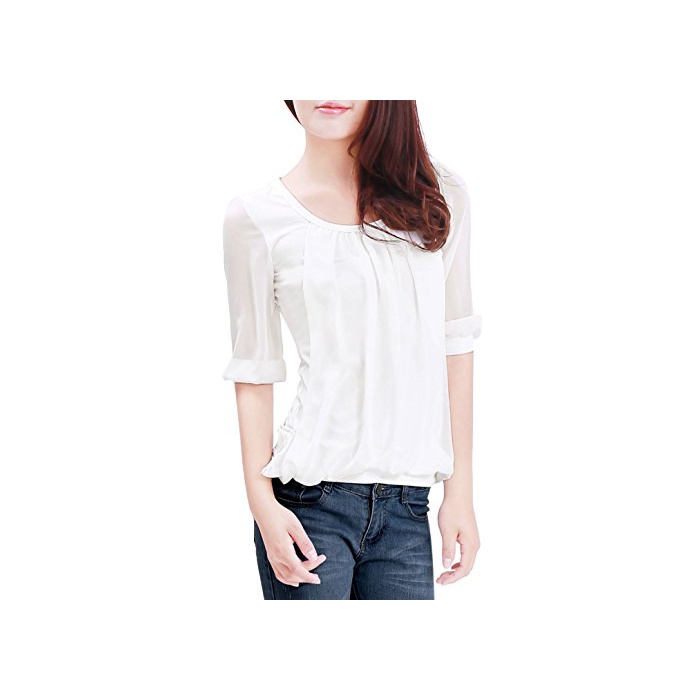 원본상품명: Allegra K (JP) レディス ブラウス トップス 無地 五分袖 ストレッチ カジュアル シンプル 薄手