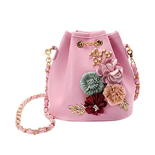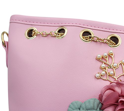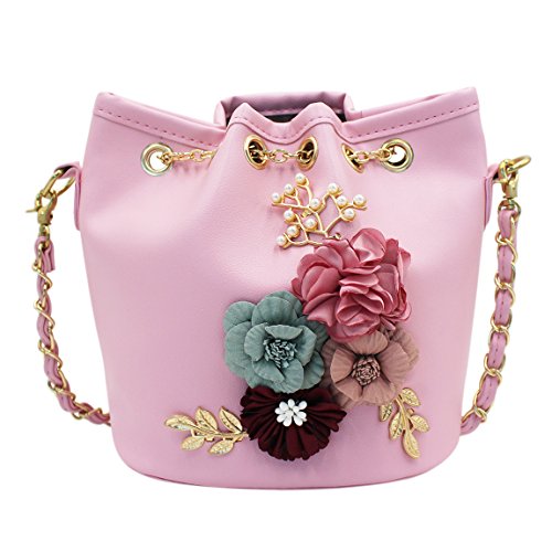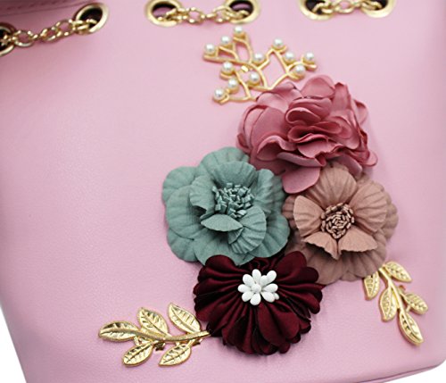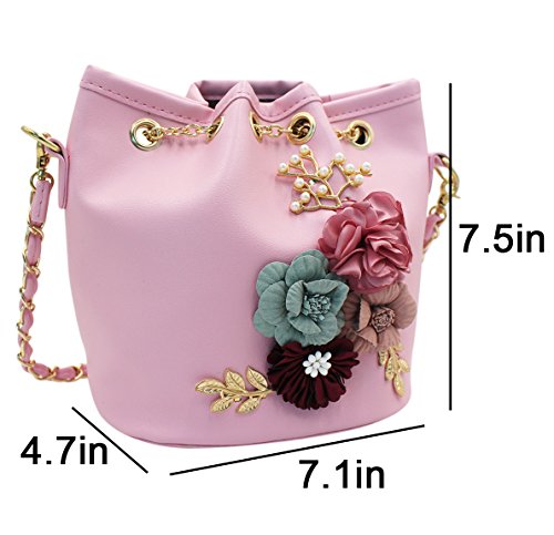 Women Drawstring Bucket Bag 3D Floral Shoulder Bag Crossbody Purse Handbag