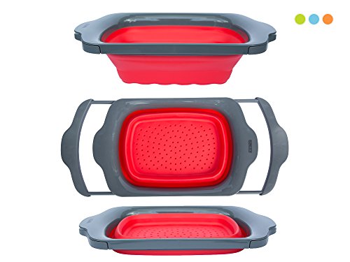 -. Feature : Kitchen workhorse, collapsible colander perfect for rinsing fruit & vegetables, draining pasta or canned foods; engineered for superior drainage - [Mother's Day Special] Gift idea / Fits most sink shapes & sizes, compact space-saver design collapses and folds, easy to store in tight cupboards and limited space / Kitchen strainer convenience features: non-slip handles gentle on all surfaces, dishwasher safe, heat resistant up to 600º F / Sturdy design holds its shape, built to last; made from non-toxic materials, BPA free and fully FDA approved for consumer health & safety / Over-sink colander 17-inches folded, expands to 25.75-inches, 4.5-inches deep, 1.4 pounds, 6-quart capacity