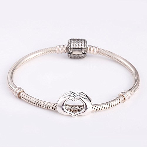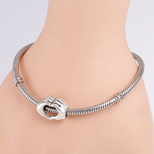 925 Sterling Silver Love Heart in Your Hands Charm for Charms Bracelets, Valentine's Day Gifts Idea