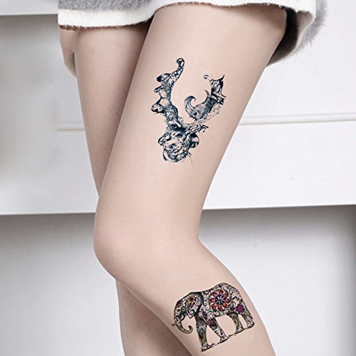 TAFLY Animal Cartoon Deer Elephant Temporary Tattoos Fake Waterproof Tattoos 5 Sheets