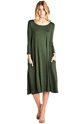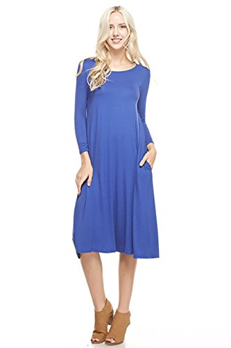 Made from a soft rayon, this is the ultimate dress featuring a round neck, 3/4 sleeves, pockets, and flared midi silhouette.