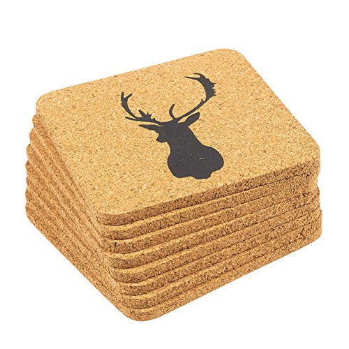 SET INCLUDES: 8 pieces of cup coasters made of cork featuring a festive reindeer silhouette design. Perfect to hold and serve various drinks in different sizes.