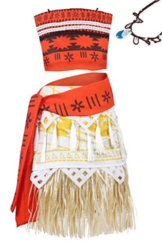 -. Brand : Wenge -. Department : girls -. Feature : Material: Polyester, Cotton / The outfit costume includes the top + dress + tassels skirt +belt+transparent shoulder strap+ necklace / The top is designed with stretchable back to meet your need, the skirt is cut in two part and with a belt to hold on / Suitable occasions: Dress up, Halloween cosplay & Christmas etc. / When purchase, Pls check the size chart in our description to buy a fittest one -. Label : Wenge -. Manufacturer : Wenge -. ProductGroup : Apparel -. ProductTypeName : CHILDRENS_COSTUME -. Publisher : Wenge -. Studio : Wenge -. Title : Wenge P.R.Incess Moana Outfit Adventure Costume Skirt Set Necklace Cosplay for Girls