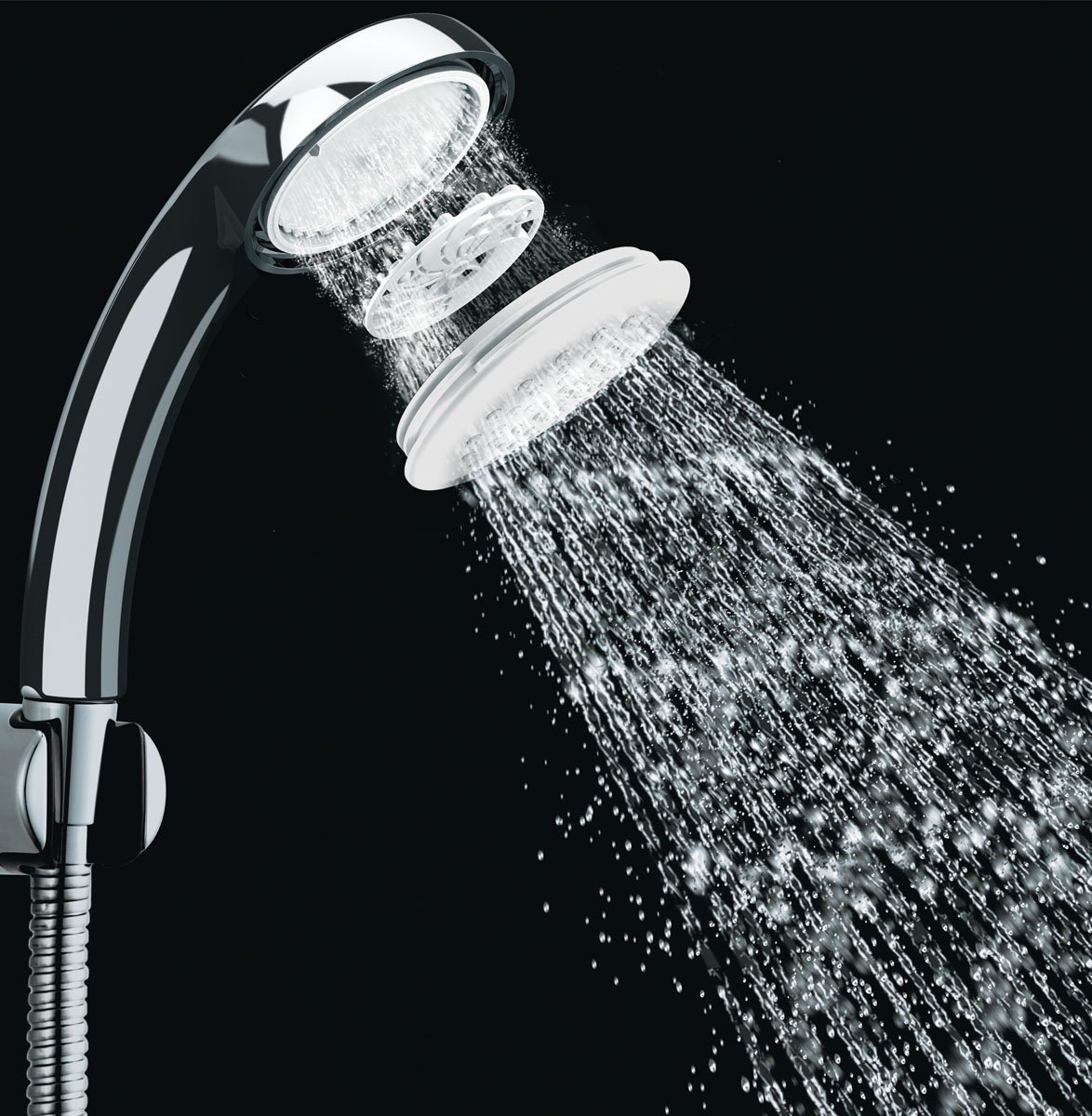 By amplifying the pressure inside the shower and spouting a momentum shower,