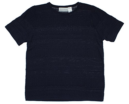 Alfred Dunner Newport collection features a shell sweater. Features include short sleeves, crewneck design, beaded accents, and is 100% acrylic.