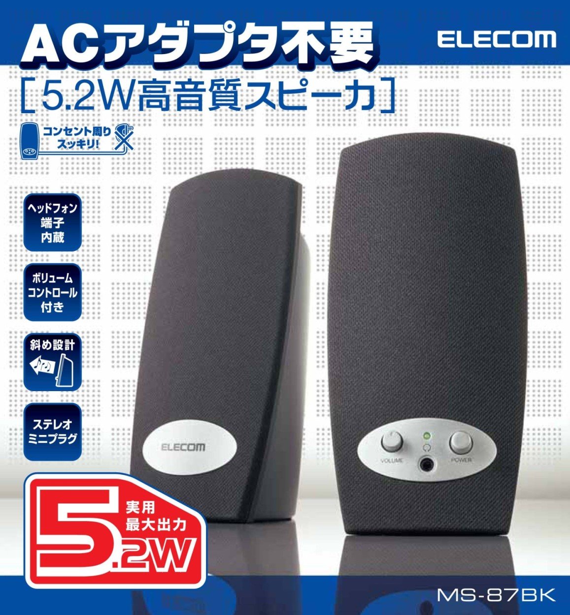 ● Small size but practical maximum output 5.2W high sound quality speaker ● AC adapter unnecessary and clean around the outlet ● By designing the main body obliquely, sound is disturbed by sound reflection on the desk ● Prevents "boundary phenomenon" ● Headphone jack