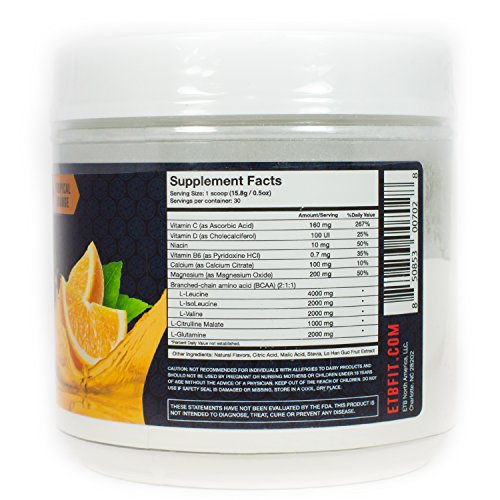 -. Feature : Helps muscles recover quickly and builds lean muscle mass to speed up results. / Promotes protein synthesis and provides sustained peak performance. / Supports prolonged enurance through your workout. / Begins to repair muscles immediately and fights against damage. / 1g Citrulline - 4g Leucine : 2g IsoLeucine : 2g Valine : 1g Glutamine