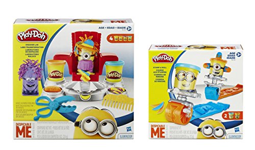 Bundle of 2 Items: Play-Doh Featuring Despicable Me Minions Disguise Lab PLUS Stamp and Roll Set. Sometimes we all feel like just one in a Minion, but the Play-Doh Disguise Lab is here to change that! Create crazy disguises for your Minions by pressing out hilarious hairstyles and customizing with Play-Doh bananas, sirens and other fun shapes. When you're done, give them a haircut and start all over again. It's about to get completely silly around here and these Minions like it that way! Despicable Me, Minion Made and all related marks and characters are trademarks and copyrights of Universal Studios. Licensed by Universal Studios Licensing LLC. All Rights Reserved. Hasbro and all related terms are trademarks of Hasbro.Feature