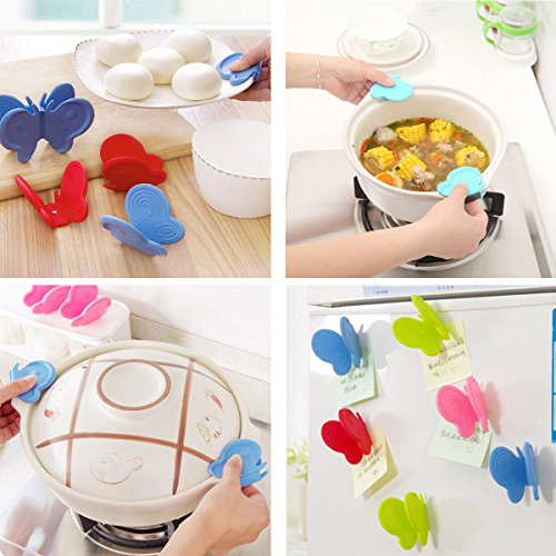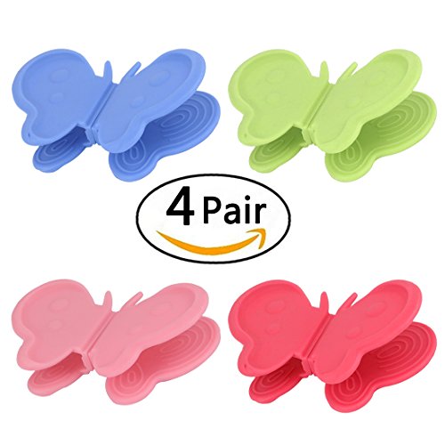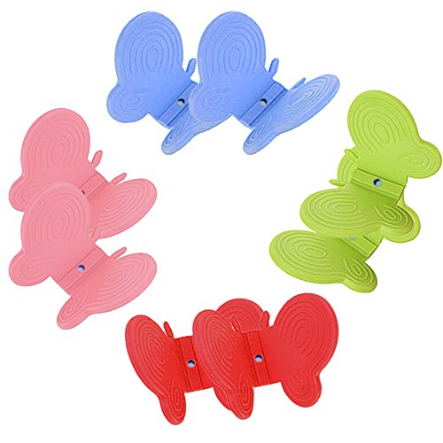 4 Color 8 Pcs Multi functional Silicone Cooking Pinch Grips ,Butterfly Shape,Silicone Pot Holder,Kitchen Magnet Gadget