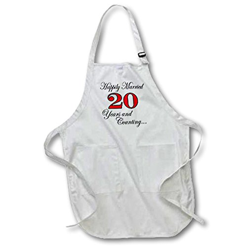 3dRose apr_193404_4 Happily Married 20 Years & Counting Red Full Length Apron with Pockets, 22 by 30", Black